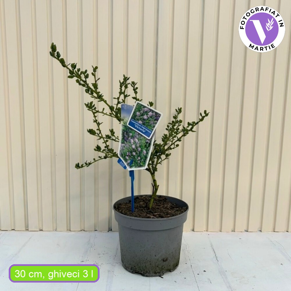 Liliac californian albastru Ceanothus Victoria este o planta spectaculoasa, cunoscuta pentru florile sale albastre intense, care dau impresia unui nor stralucitor in gradina. Aceasta planta perena creste rapid si infloreste din mai pana in iunie, oferind un peisaj incantator si atragand albinele si fluturii.