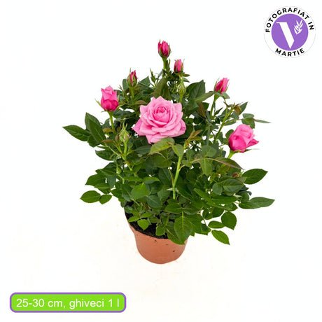 Utilizare versatila: Trandafirii pitici pot fi utilizati in diverse moduri in gradina si peisaj. Acestia pot fi plantati in grupe sau in borduri, pentru a delimita spatiile sau pentru a oferi o nota de culoare, iar in ghivece sau containere, acesti trandafiri pot aduce farmecul gradinii pe terase sau balcoane.