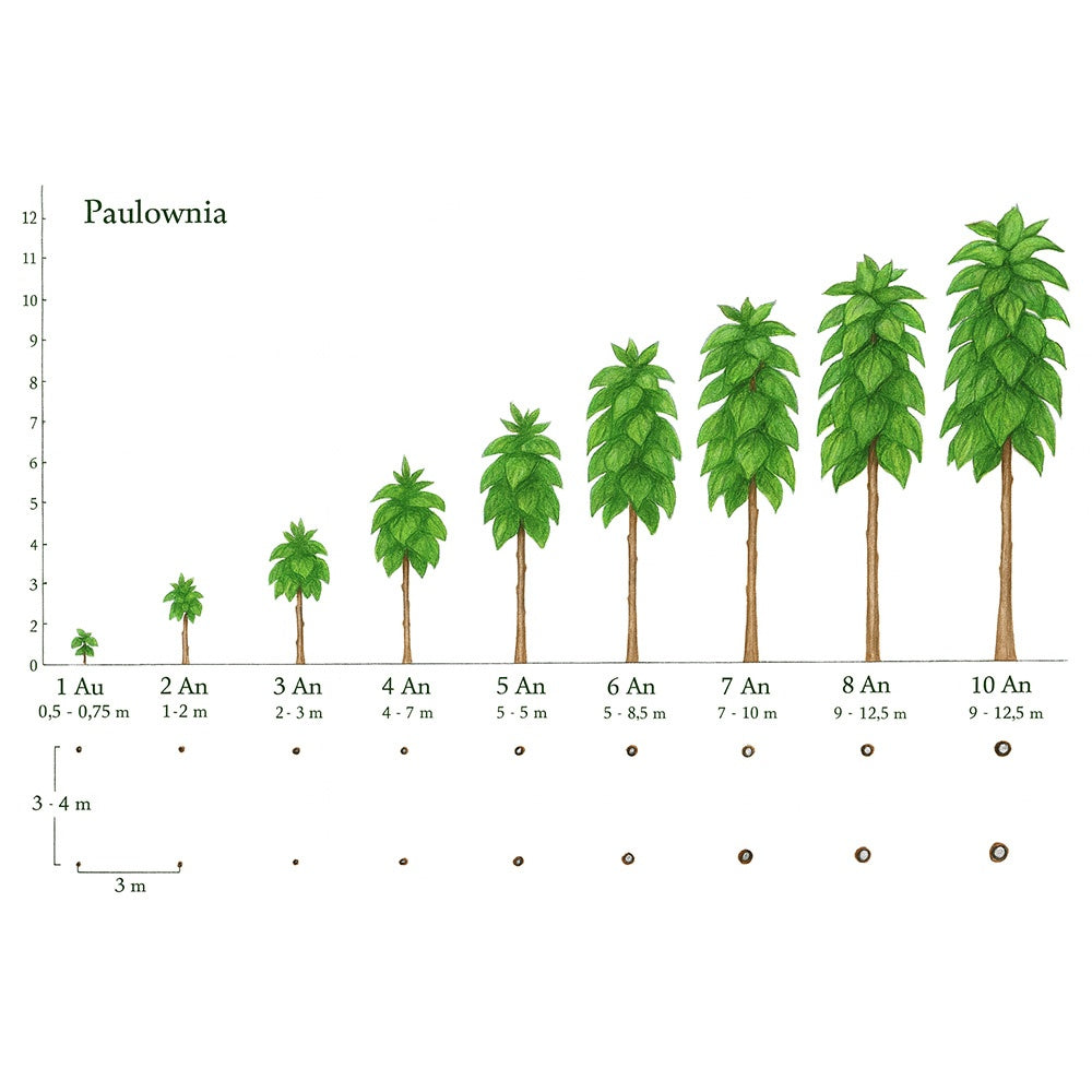 Acest arbore este foarte rezistent la frig, suportand temperaturi de pana la -20°C, ceea ce il face potrivit pentru toate regiunile Romaniei, inclusiv cele cu ierni mai aspre. La maturitate, poate ajunge la 12–15 metri inaltime, cu o coroana larga si echilibrata. Ritmul de dezvoltare este extrem de rapid, de pana la 3–4 metri pe an, ceea ce il plaseaza printre cei mai rapizi arbori ornamentali.