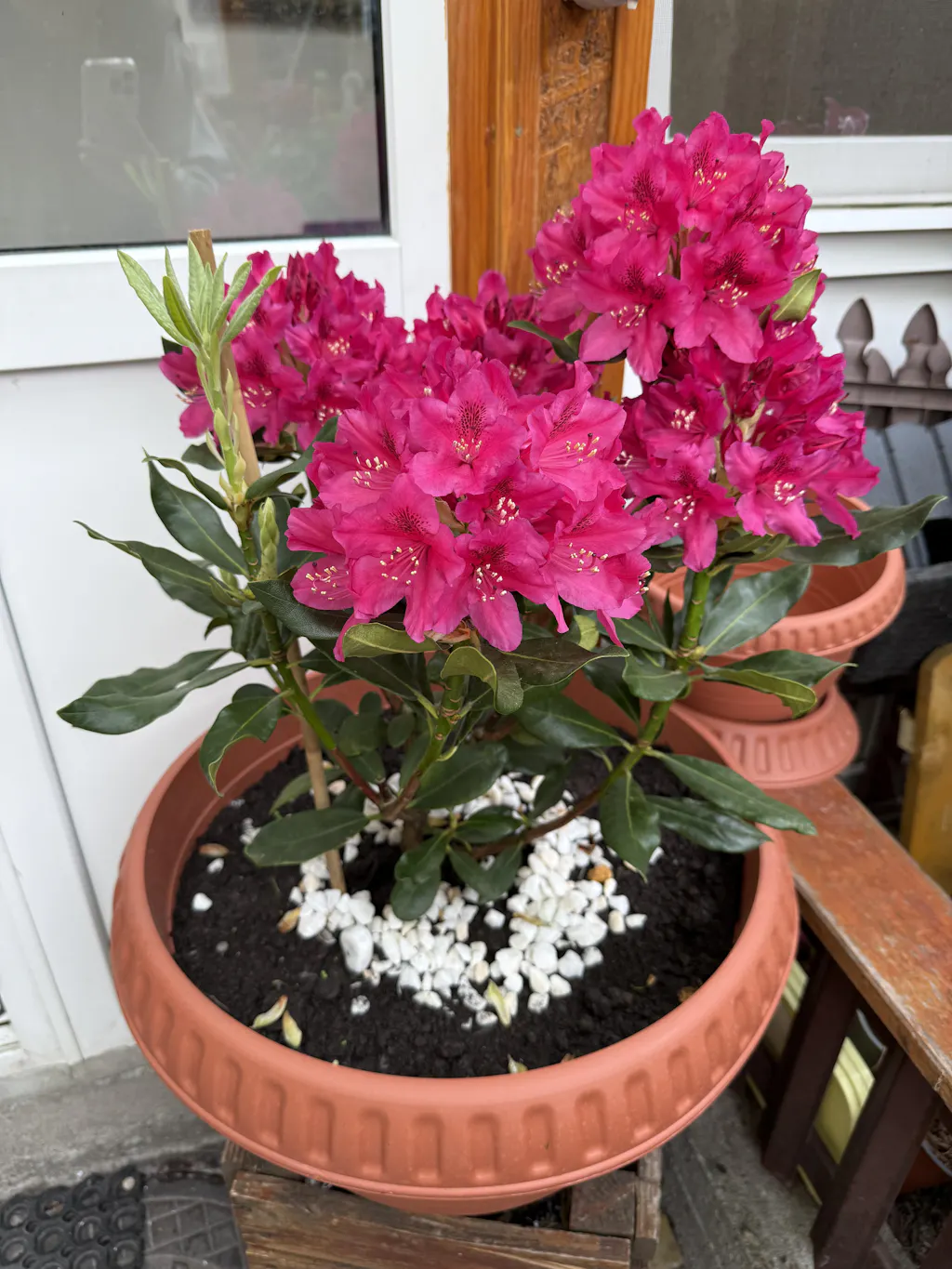 Azaleea Japoneza (Rhododendron) Nova Zembla, cu flori rosii-violet, inflorire primavara, vesnic verde, prefera semi-umbra si sol acid