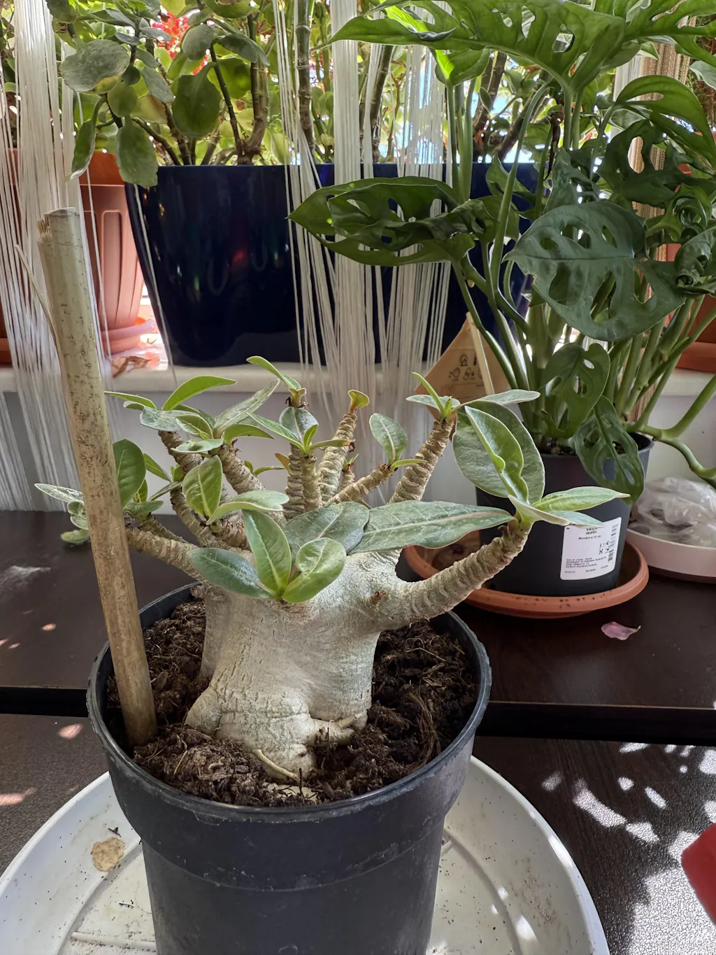Micul Trandafirul desertului Baobab Bonsai va intra in dormanta pe masura ce vremea se raceste, iar frunzele se vor ingalbeni si se vor estompa.