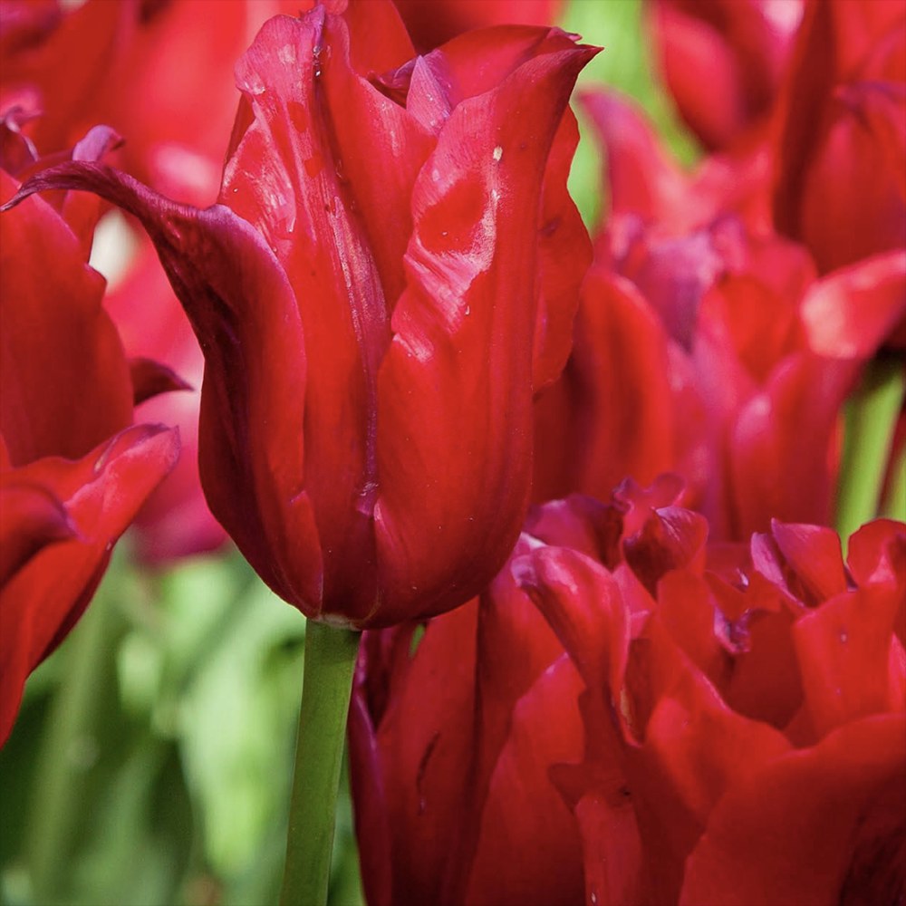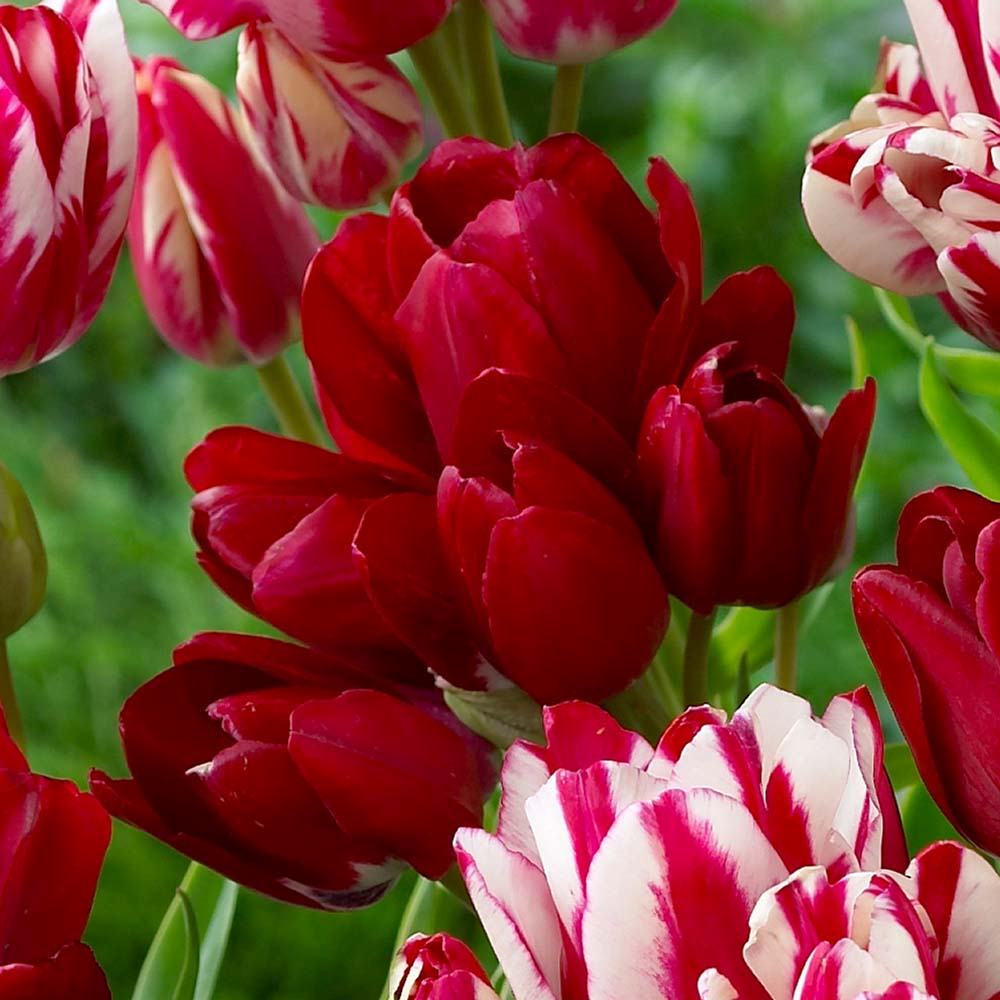 Lalelele Fiery Club sunt cunoscute pentru florile lor duble, bogate si elegante, complet rosii, cu o nuanta intensa si uniforma. Aspectul lor plin si textura catifelata a petalelor creeaza un efect vizual luxuriant, ideal pentru gradinile care doresc o prezenta puternica si rafinata. Florile sunt mari, rotunjite, cu petale suprapuse care adauga volum si dinamism, facand aceasta varietate o alegere preferata pentru straturi florale, borduri si buchete de primavara.