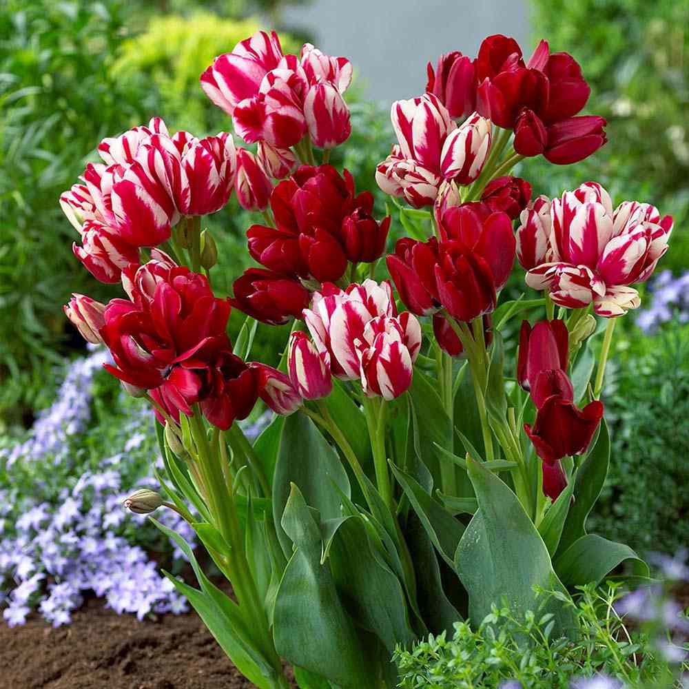 Inflorirea are loc in lunile aprilie – mai, cand lalelele ating inaltimea de aproximativ 40 – 45 cm. Tulpinile sunt ferme si rezistente, sustinand cu usurinta greutatea florilor duble. Aceasta varietate este potrivita atat pentru plantarea in gradina, cat si in ghivece mari sau jardiniere, unde poate crea accente puternice de culoare. Aspectul lor compact permite integrarea usoara in mixuri florale, dar si plantarea in grupuri pentru impact maxim.
