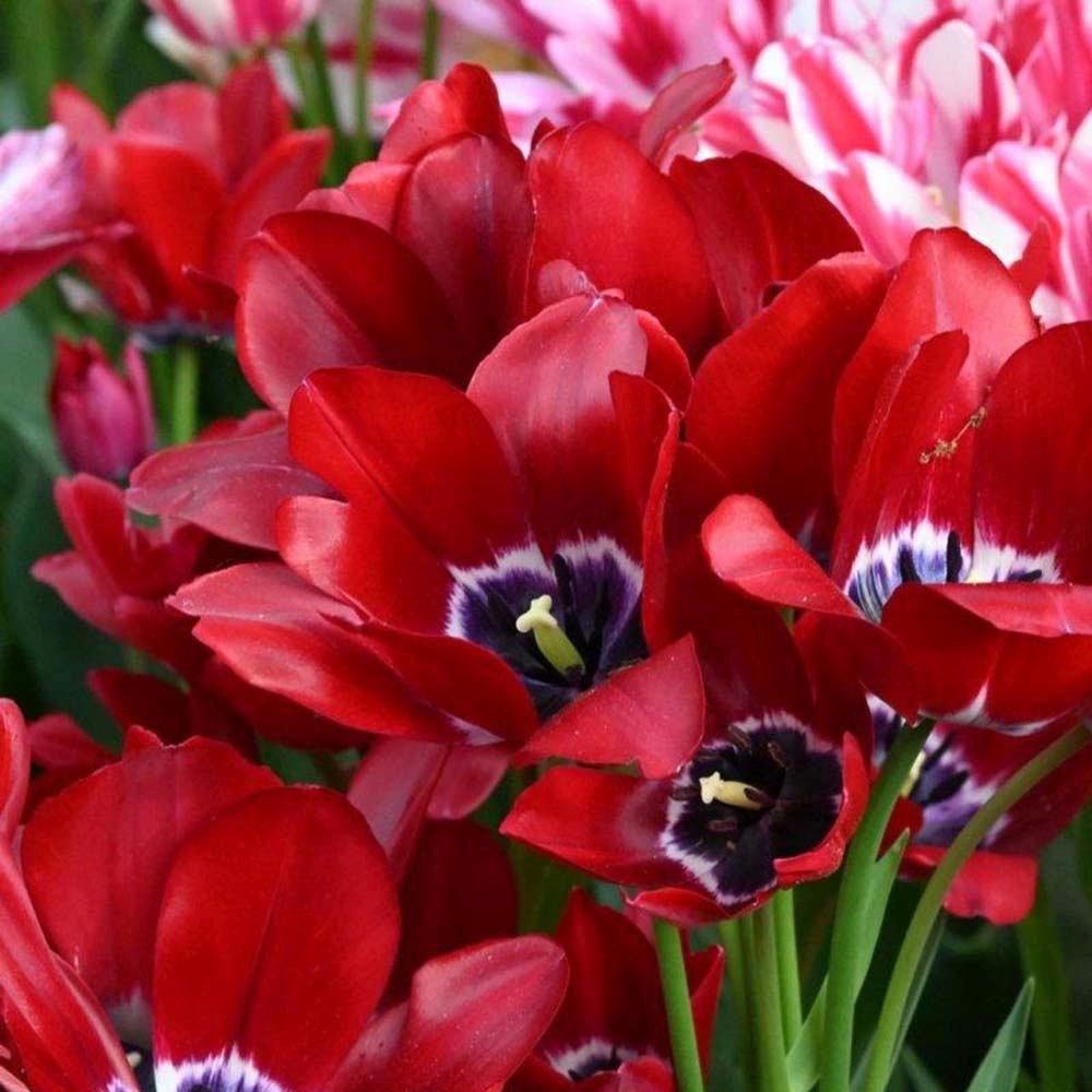 Bulbi Lalele Fiery Club, set de 7 buc cu flori rosii, inflorire aprilie, rezistent la frig