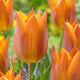 Bulbi Lalele Request, set de 7 buc cu flori crem-portocaliu cu accente mov, inflorire aprilie, rezistent la frig