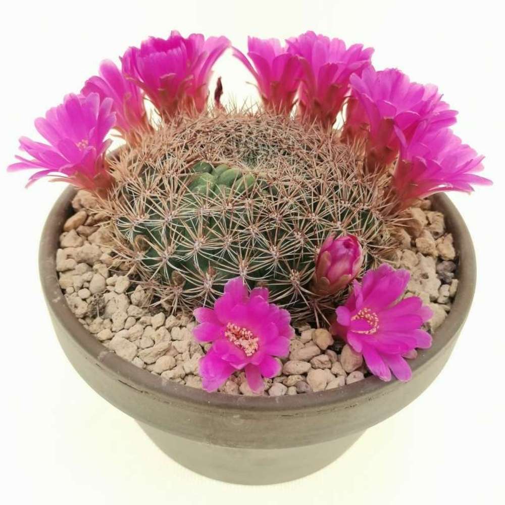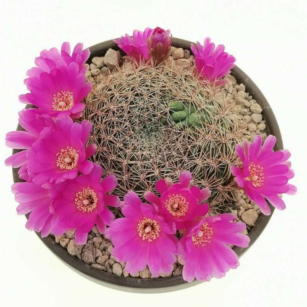 Cactus Sulcorebutia steinbachii este o bijuterie botanica adorata de pasionatii de cactusi pentru florile sale superbe, cu un violet intens si petale catifelate. Acest cactus mic, originar din Bolivia, impresioneaza prin forma sa globulara si dimensiunile reduse, care il fac ideal pentru a fi tinut in colectii de plante de interior sau in spatii mici unde se doreste un accent exotic. Contrastul dintre corpul verde inchis si florile vibrante atrage imediat privirea si transforma planta intr-un punct central de decor.