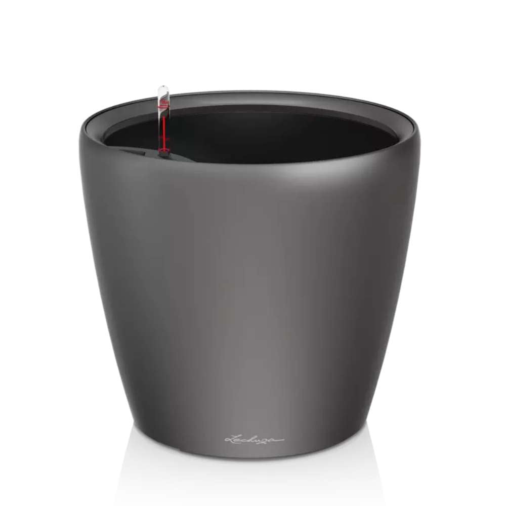 Ghiveci Auto-Irigant Lechuza Classico Premium 35 LS, 13 l, gri metalic, sistem de autoirigare, insert detasabil, strat de drenaj
