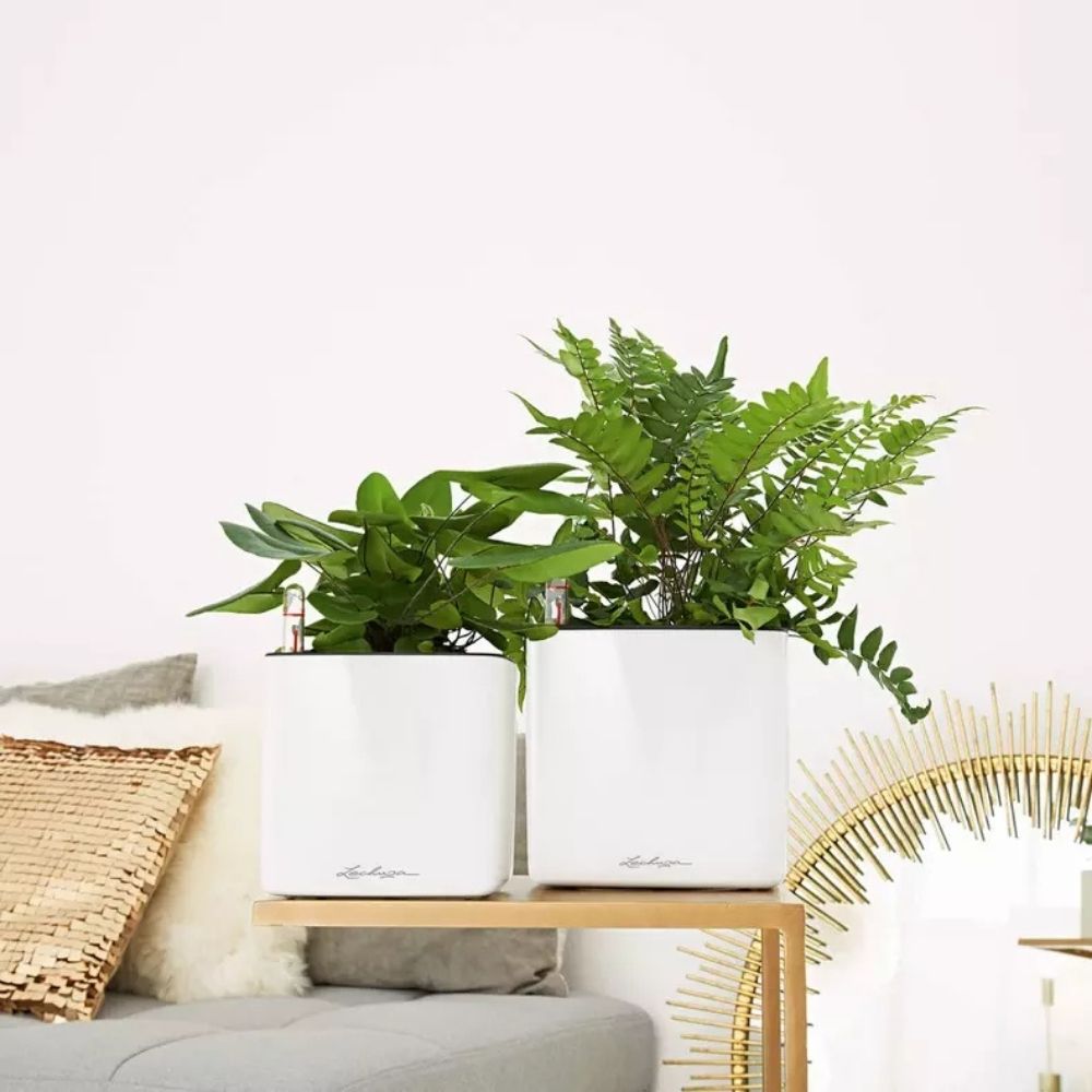 CUBE Glossy este gandit pentru ingrijirea fara efort a plantelor. Nu este nevoie sa transplantezi – pur si simplu inserezi fitilul Lechuza in ghiveciul original (de productie) al plantei, il plasezi in interiorul ghiveciului decorativ si umpli rezervorul cu apa. Sistemul de autoirigare se ocupa de restul: planta isi trage singura apa in ritmul propriu, iar indicatorul vizual iti arata cand este momentul sa completezi rezervorul.