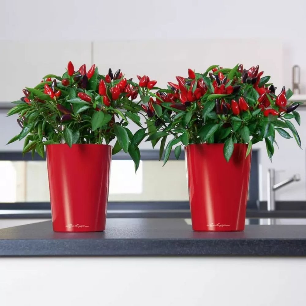 Acest ghiveci include sistemul inteligent de autoirigare Lechuza, cu rezervor de apa si indicator de nivel, eliminand grija udarii prea dese sau insuficiente. La inceput, plantele se uda de sus pana cand radacinile ajung la rezervor, dupa care ghiveciul functioneaza autonom, mentinand un echilibru optim intre umiditate si aerisire.