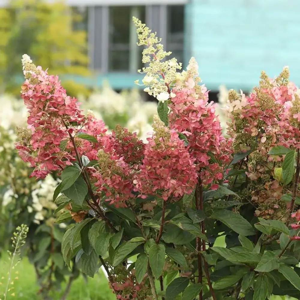 Inflorirea are loc din iulie pana in septembrie, oferind o perioada lunga de interes decorativ in gradina. Florile sunt dispuse in inflorescente mari, piramidale, iar tulpinile rosietice contrastante adauga un plus de eleganta si structura plantei. Aceasta hortensie este iubita de albine si alte insecte polenizatoare, fiind un plus important pentru biodiversitatea locala.
