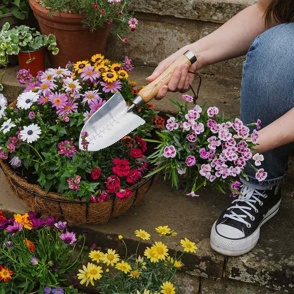 Designul inteligent include o muchie zimtata, extrem de utila pentru plivirea buruienilor, taierea radacinilor sau deschiderea rapida a sacilor cu substrat. Varful ascutit permite patrunderea usoara in pamant, iar scala gravata pe lama ajuta la stabilirea corecta a adancimii de plantare, aspect esential pentru bulbi, rasaduri si plante ornamentale.