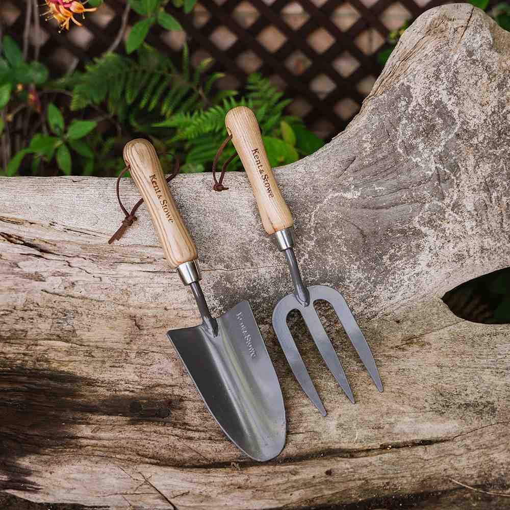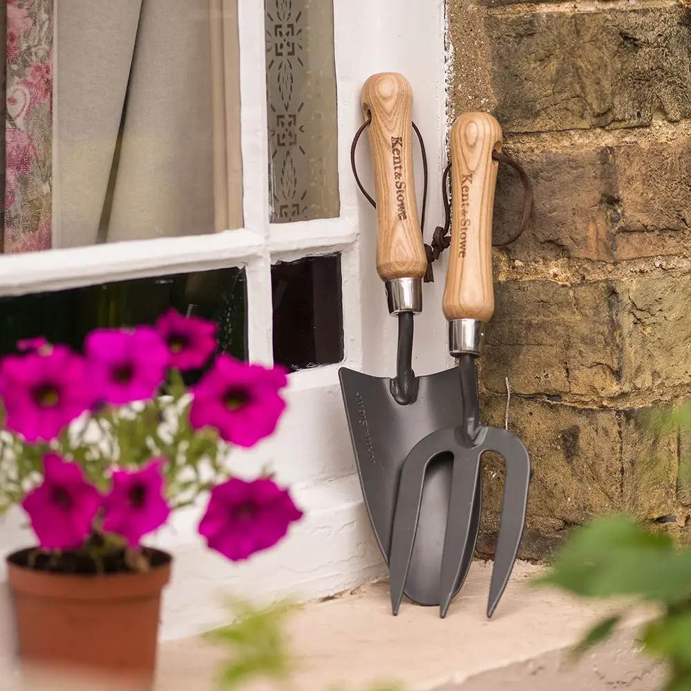 Lopatica gradina Kent & Stowe din otel carbon, maner lemn frasin FSC, pentru plantare si transplantare, garantie 10 ani
