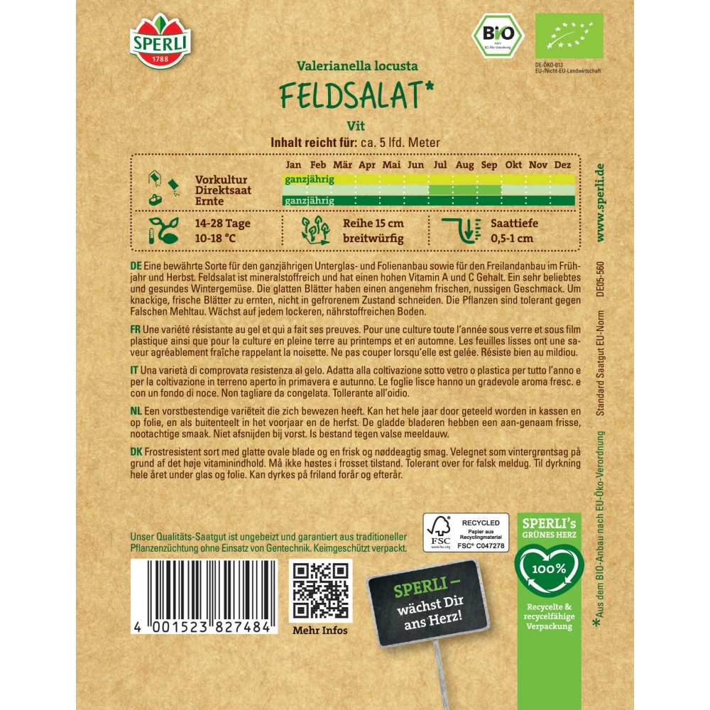 Salata BIO de camp Vit de la SPERLI este un soi de incredere pentru cultura ecologica, adaptat atat pentru gradina, cat si pentru spatii protejate. Semintele provin din plante mama cultivate organic, oferind siguranta si calitate superioara. Acest soi este recunoscut pentru frunzele sale fine si gustul placut, usor de nuca, fiind bogat in vitaminele C si A. Se preteaza excelent pentru culturile din sezonul rece si este toleranta la mana, o boala frecventa la salata.