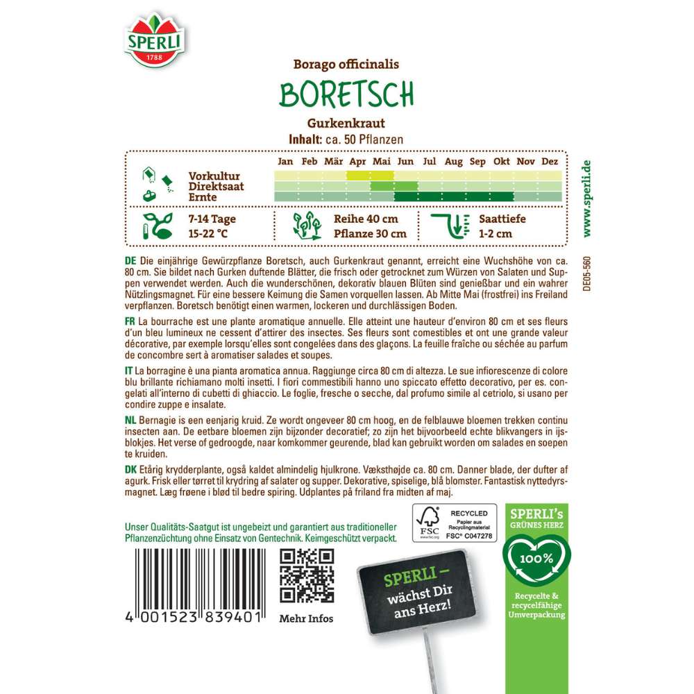 Borago officinalis, cunoscuta ca iarba castravetelui, este o planta anuala extrem de versatila, folosita atat in bucatarie, cat si in medicina naturala. Frunzele sale proaspete au o aroma subtila de castravete si se potrivesc excelent in salate, alaturi de oua, branza sau peste. Florile albastre, comestibile si spectaculoase, pot fi utilizate ca decor sau congelate in cuburi de gheata pentru un efect vizual deosebit.