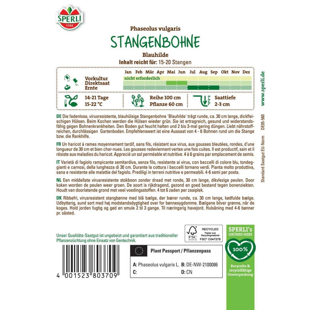 Soiul 'Blauhilde' este rezistent la virusuri si foarte productiv, oferind recolte abundente din iulie pana in septembrie. Se seamana direct in gradina in lunile mai si iunie, la o adancime de 2 – 3 cm si o distanta intre randuri de 60 cm. Germinatia dureaza intre 14 si 21 zile, la temperaturi de 15–22°C.