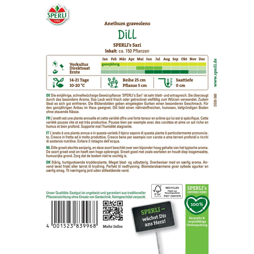 Mararul 'SPERLI Sari' este o varietate premium, cu frunze dese si un continut ridicat de uleiuri aromatice. Ideal pentru gradinarii care cauta seminte de marar care germineaza rapid si ofera o recolta gustoasa si sanatoasa. Planta se dezvolta excelent langa morcovi sau alte legume, contribuind la echilibrul solului si combaterea naturala a daunatorilor.