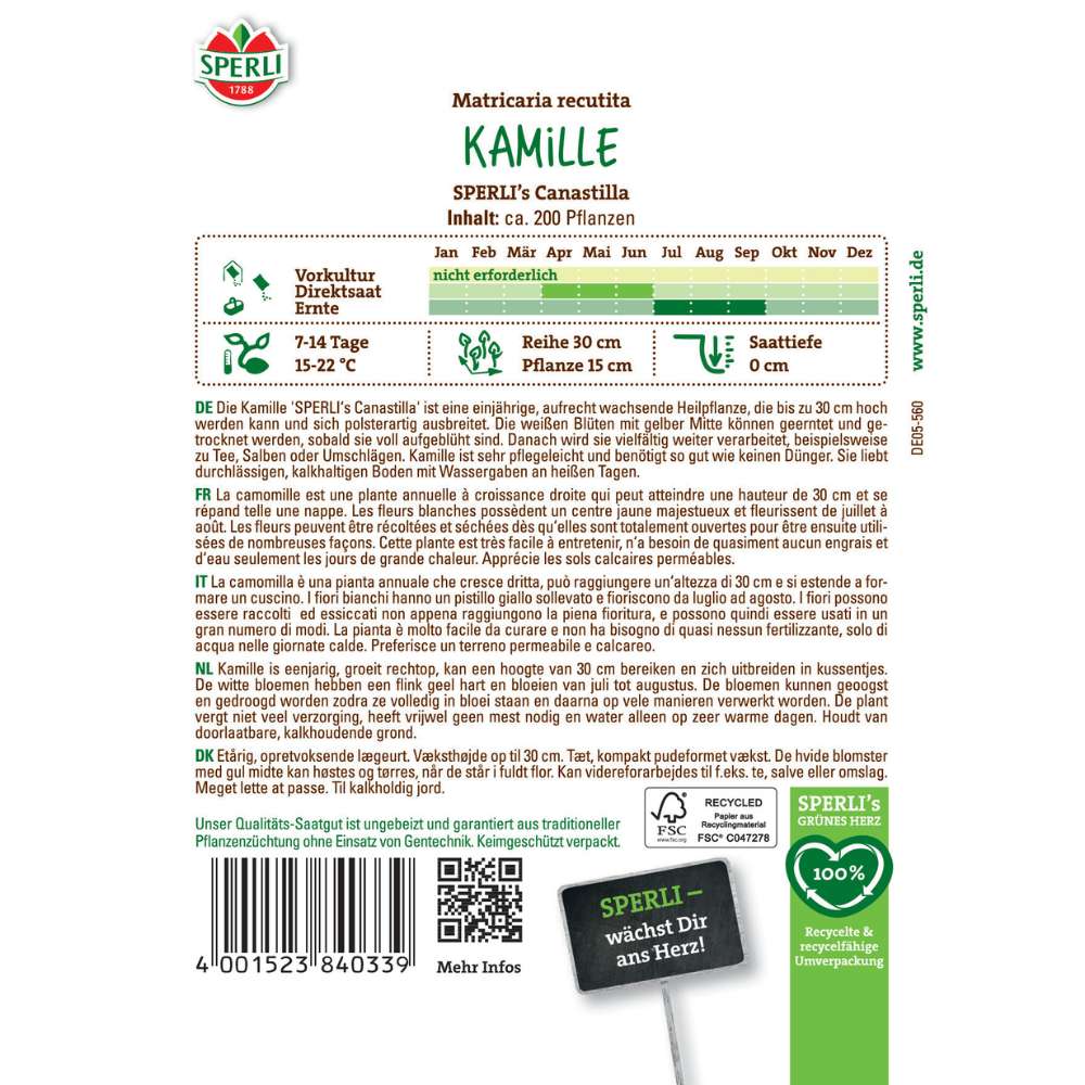 Musetelul SPERLI Canastilla este o varietate anuala de musetel medicinal, recunoscuta pentru florile sale mari si centrul galben reliefat. Este excelent pentru prepararea ceaiurilor, unguentelor sau compreselor naturale, dar si ca planta decorativa in gradini rustice si borduri. Planta creste compact, pana la 30 cm, formand o perna densa de flori parfumate si utile.