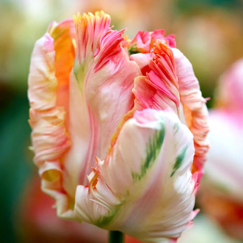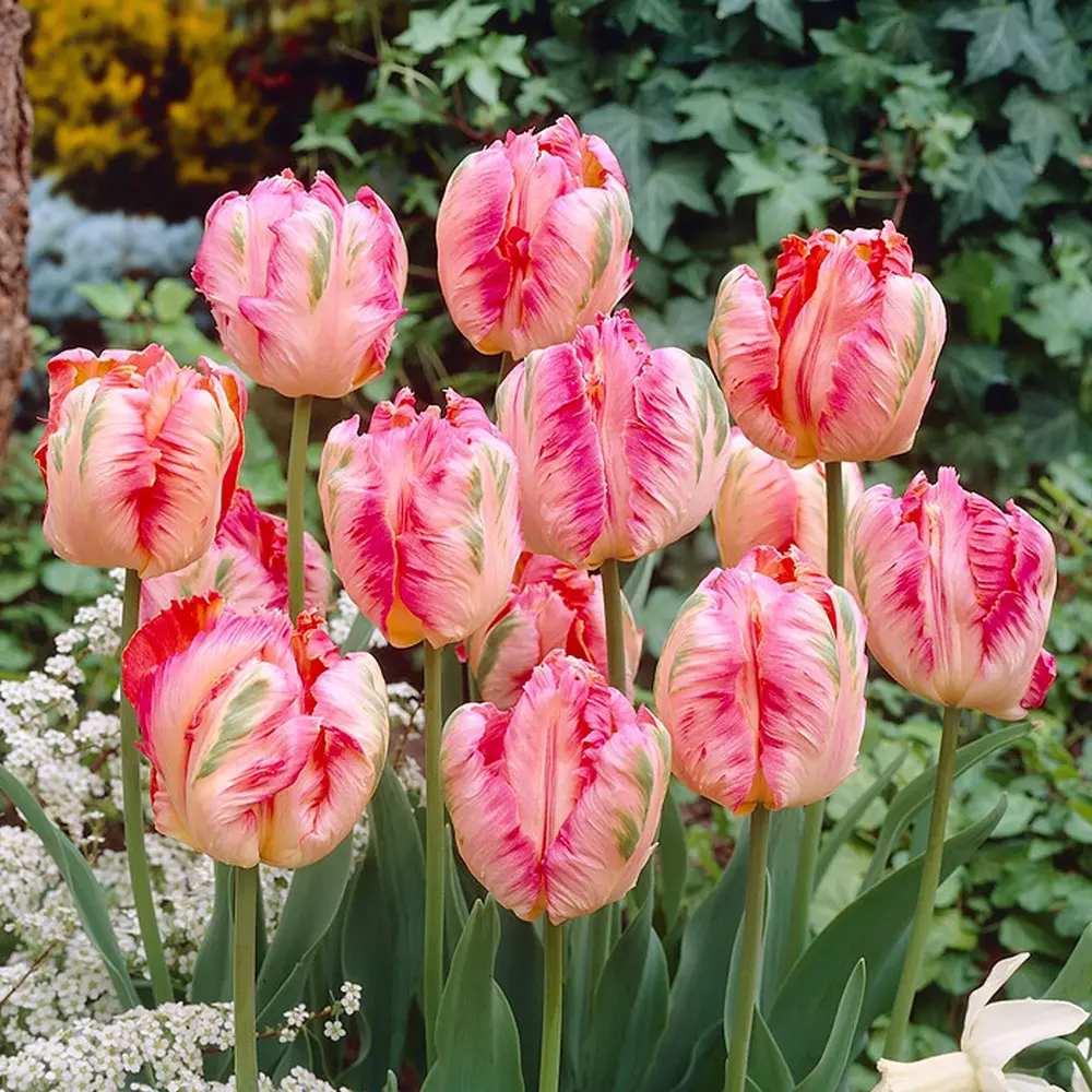 Bulbii de Lalele Apricot Parrot, disponibili in set de 7 bucati ambalate in plasa, transforma orice colt de gradina intr-un spectacol cromatic. Aceasta varietate este apreciata pentru florile sale mari, ondulate, cu petale colorate intr-un amestec unic de roz, piersica, galben si accente verzi. Forma neobisnuita a petalelor, asemanatoare aripilor de papagal, face ca fiecare floare sa para o opera de arta naturala.