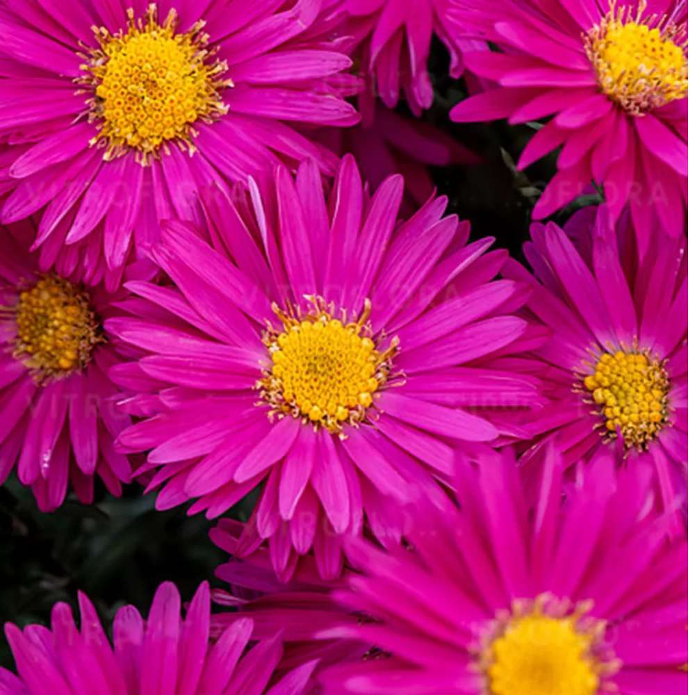 Steluta de toamna Aster Neron, perena decorativa cu flori rosii-purpuriu, inflorire septembrie-octombrie, rezistenta frig