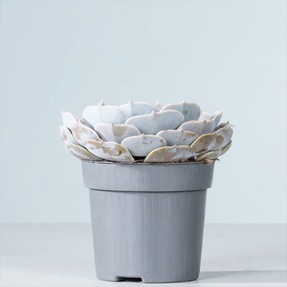 Echeveria Sky Pearl este o planta suculenta de interior extrem de apreciata pentru aspectul sau elegant si culoarea delicata a frunzelor. Aceasta varietate se remarca prin rozeta perfect formata, cu frunze groase, carnoase, acoperite de un strat fin ceros. Nuanta frunzelor variaza intre alb perlat, albastru deschis si gri argintiu, oferind un efect vizual sofisticat. Aspectul sau modern o face ideala pentru decoruri minimaliste, contemporane sau scandinave.