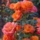 Trandafir Floribunda portocaliu-auriu Morning Sun, inflorire repetata