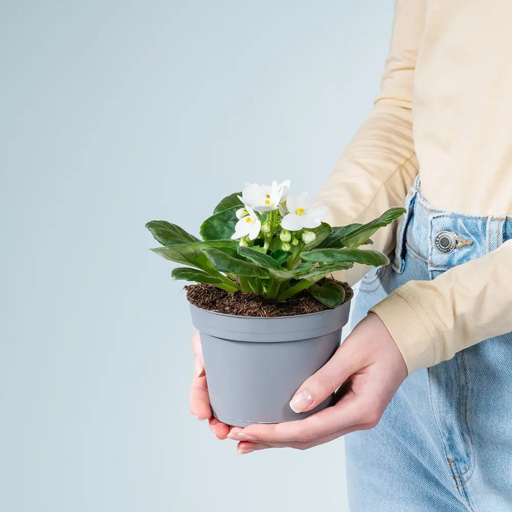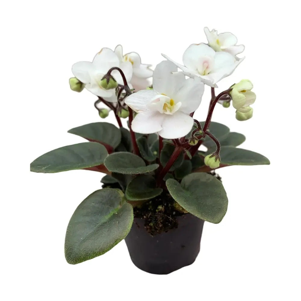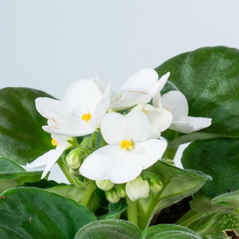 Violeta de Parma, Saintpaulia More Lips, cu flori albe, plante inflorita, de interior, intretinere minima