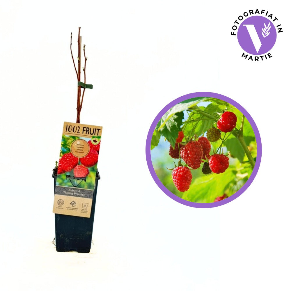Rubus Idaeus 'Malling Promise', o varietate remarcabila de zmeura, se distinge prin productivitatea impresionanta si robustetea sa. Aceasta varietate ofera o recolta generoasa, producand pana la 5-8 kg de fructe pe tufa, care se remarca prin culoarea lor rosu intens si gustul dulce-acrisor. Este o planta care nu numai ca imbogateste biodiversitatea gradinii prin atractia sa pentru albine, dar si adauga o valoare estetica datorita florilor sale delicate ce infloresc in lunile de vara.